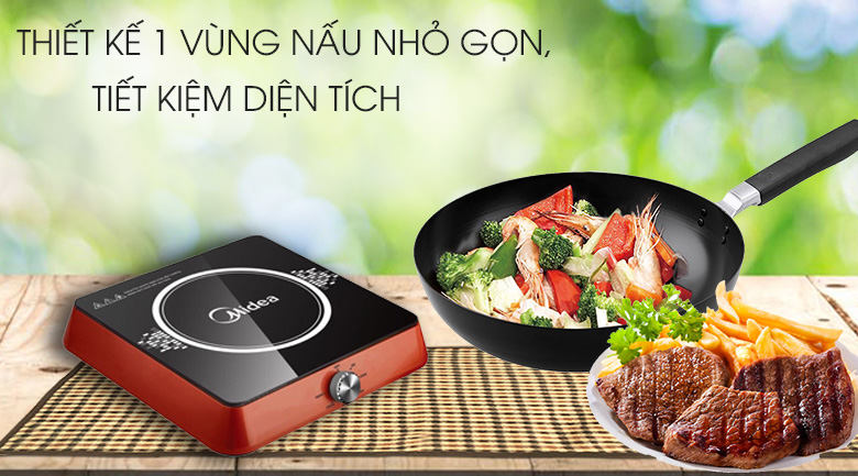 Bếp từ Midea MI-K1917EF(G) có màu đỏ bắt mắt, với 1 vùng nấu thiết kế gọn nhẹ, tiện di chuyển và sử dụng.