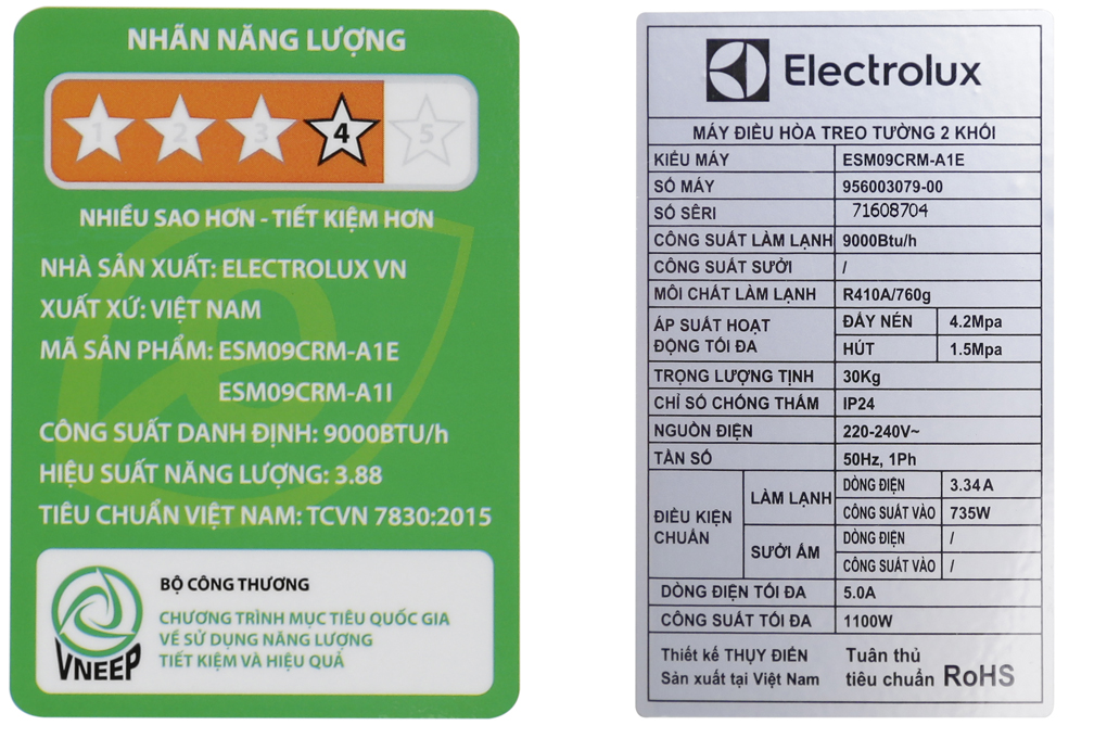 Thông số kỹ thuật chi tiết Máy lạnh Electrolux 1HP ESM09CRM-A1