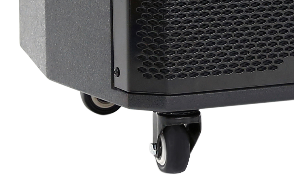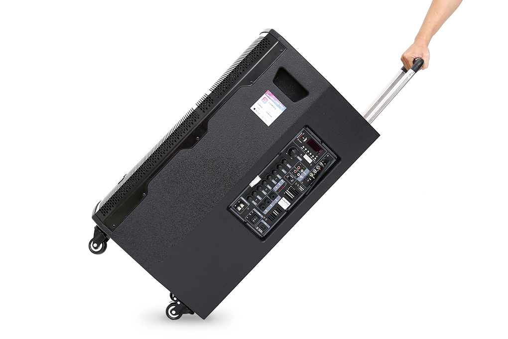 Loa có 4 bánh xe nhỏ và tay kéo vali giúp bạn di chuyển loa kéo nhanh nhẹn, dễ dàng đến mọi vị trí, không gian