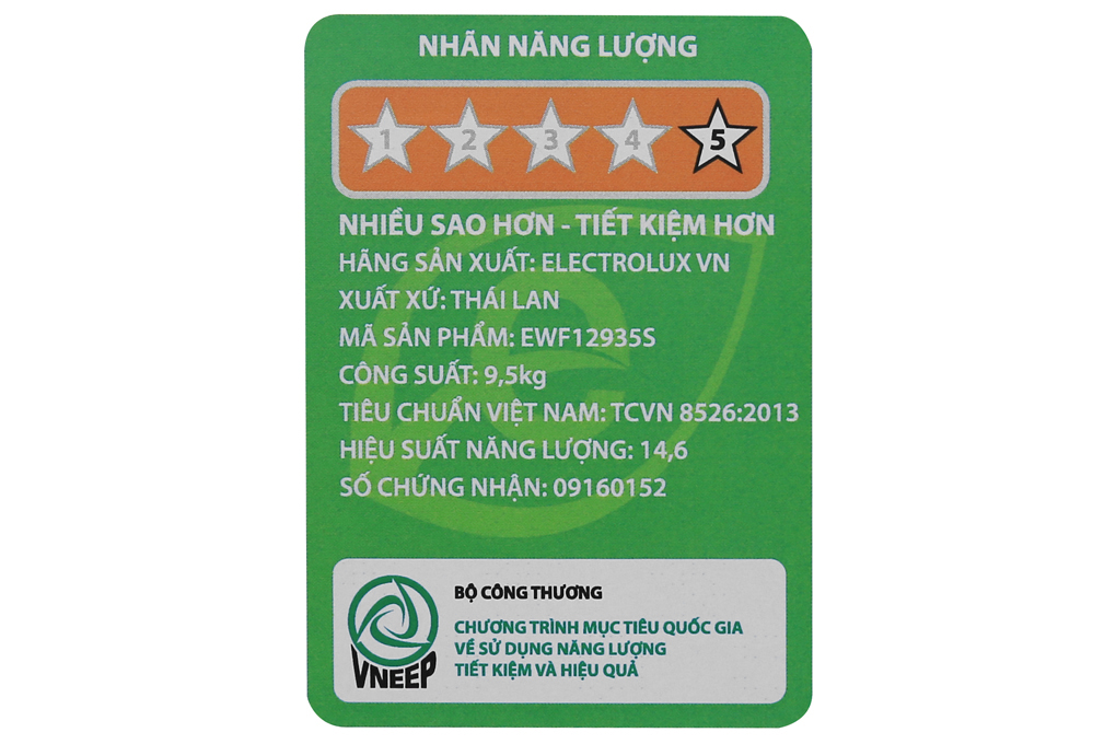 Thông số kỹ thuật chi tiết Máy giặt Electrolux Inverter 9.5 kg EWF12935S