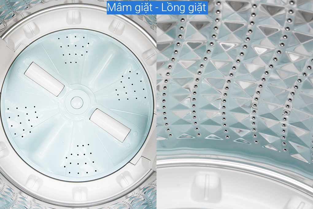 • Tiện ích:Khay giặt tay tiện lợi, Khóa trẻ em, Máy chạy êm & bền, Tự khởi động lại khi có điện, Vệ sinh lồng giặt