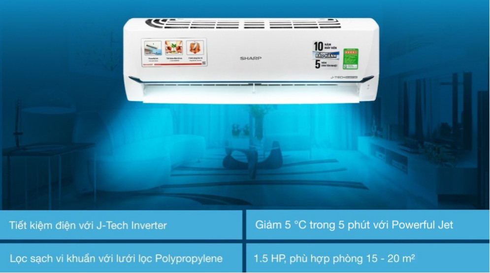 Tiết kiệm điện lên đến 65% nhờ công nghệ J-Tech Inverter và chế độ Eco
