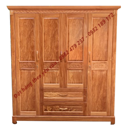 TỦ ÁO GỖ ĐINH HƯƠNG 4 CÁNH MẪU ĐỒNG TIỀN